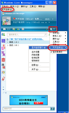 圖: MSN 上的天天在線菜單