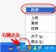 如果您安裝的是獨(dú)立客戶(hù)端模式,則在登陸后,將在桌面的右小角有一個(gè)kf000在線客服系統(tǒng)的圖標(biāo),鼠標(biāo)右鍵點(diǎn)擊小圖標(biāo),選擇“打開(kāi)”就進(jìn)入客服端監(jiān)控窗口。