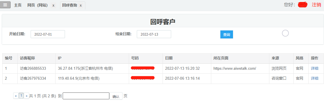 回呼可在“記錄中心-回呼查詢”查看,如需短信提示可聯(lián)系客服開通;